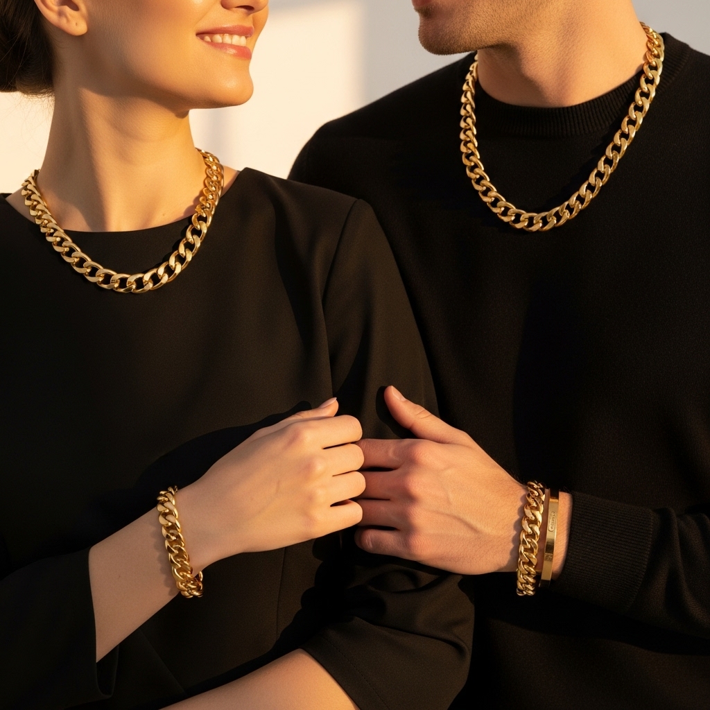 Outfits need bling. Match accessories for couple outfits.