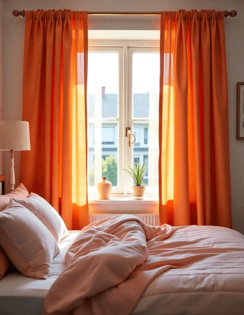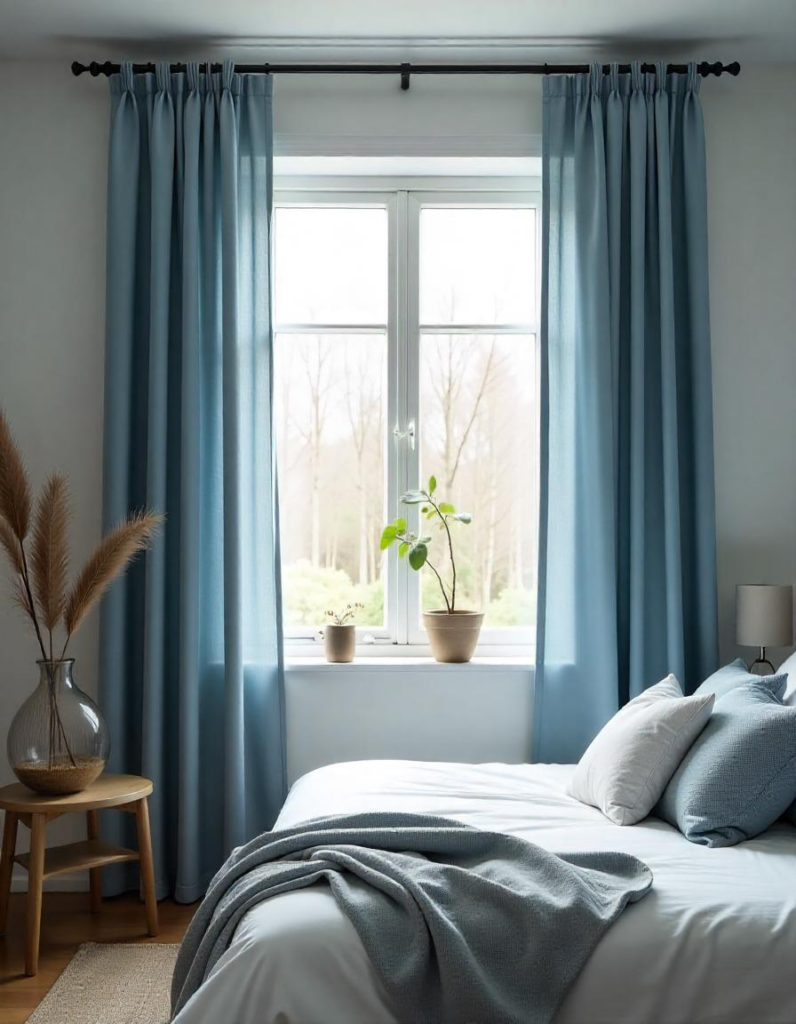 Changing curtains with the seasons keeps your bedroom feeling fresh. In spring and summer, choose colors like yellow or light blue. These shades add warmth and liveliness, making the room feel more expansive.