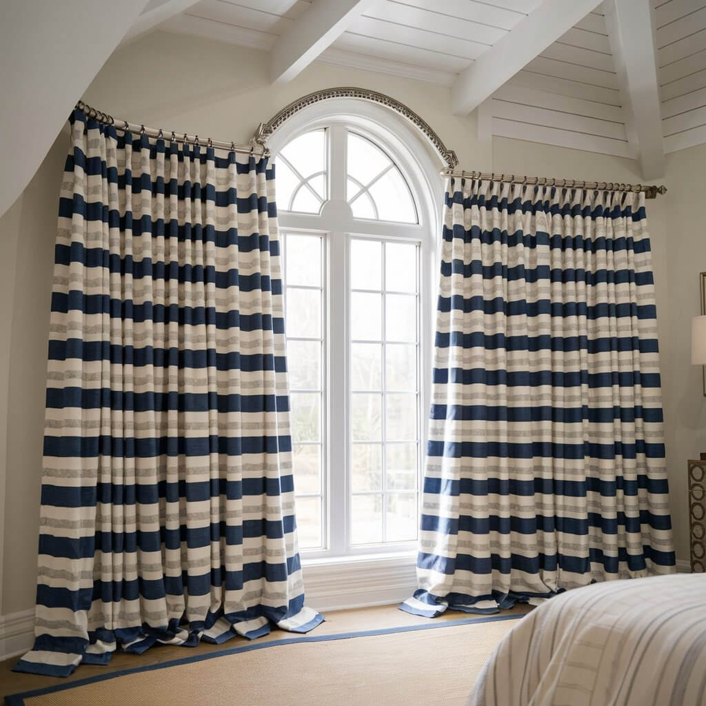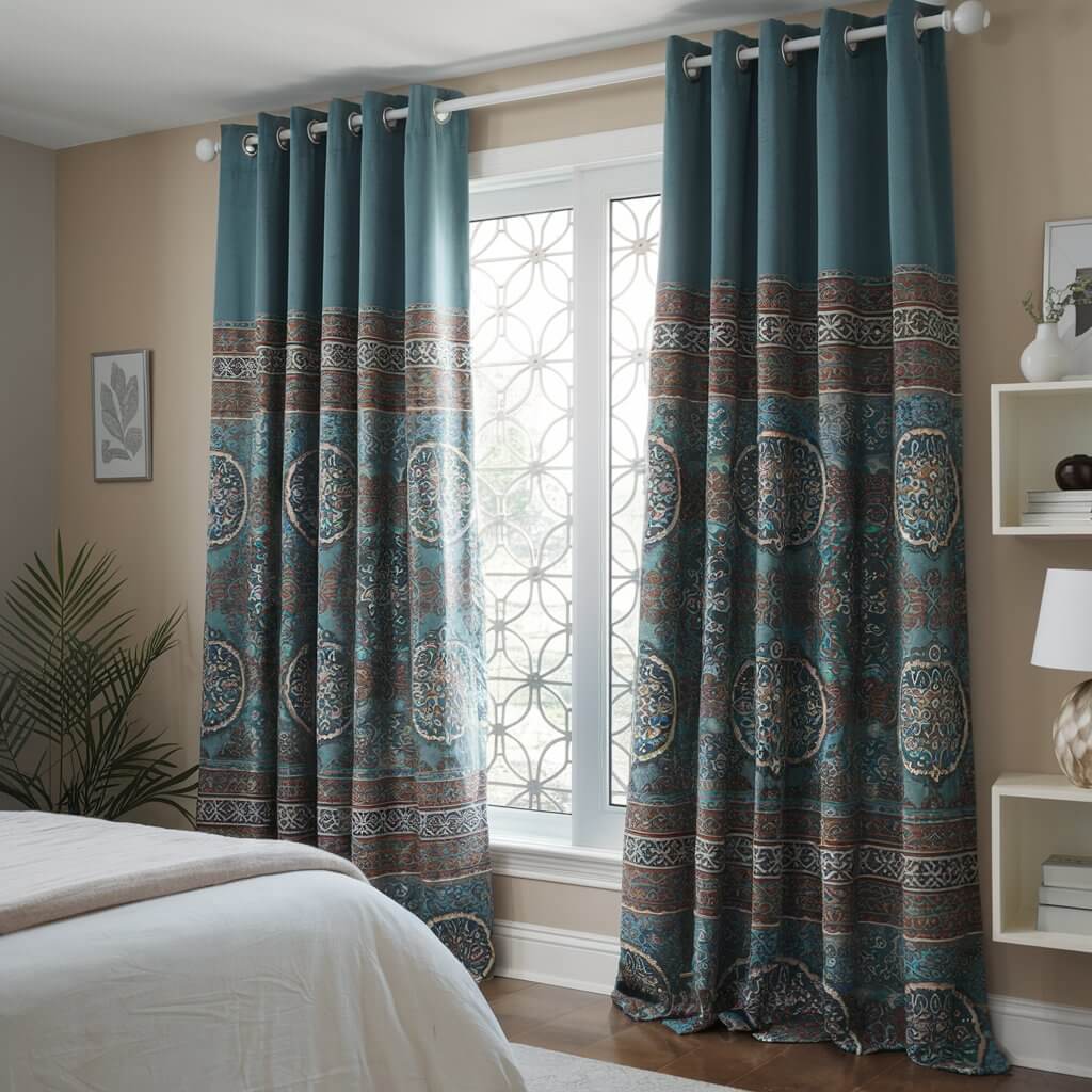Answer: Patterned drapes add charm to the bedroom with designs like floral prints or geometric patterns. Light-colored prints can brighten up the room, while darker patterns create a cozy atmosphere. The choice of fabric also affects insulation and light control.