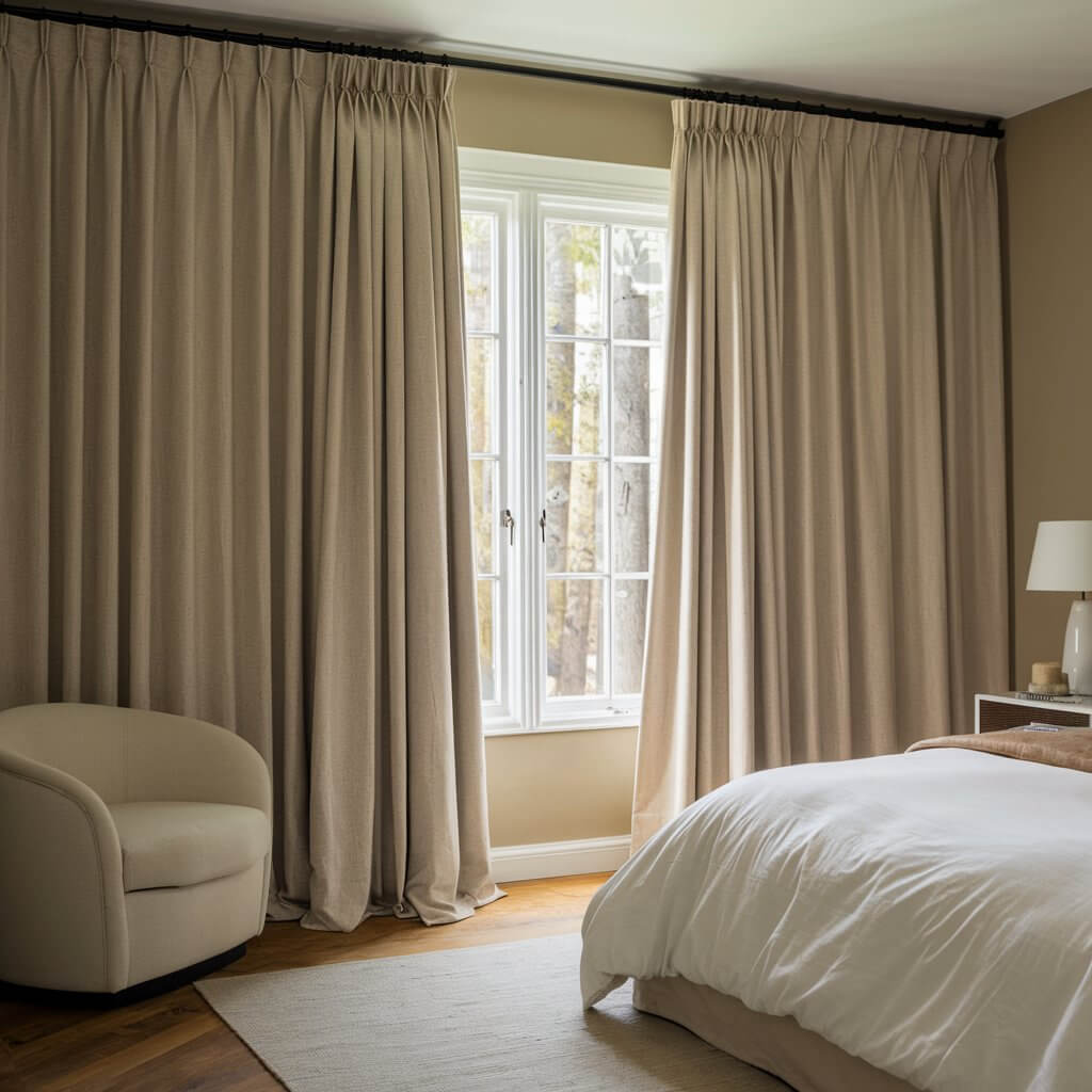 Choosing neutral colors for your bedroom curtains also allows one to play with other decorative elements. You can add colorful pillows or bedspreads for a balanced and welcoming atmosphere.