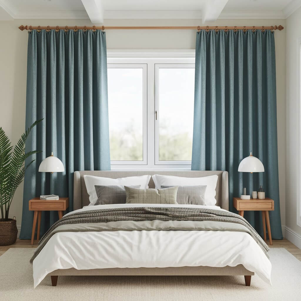 Answer: Thermal curtains keep warm air in during winter and block out heat in summer, making the bedroom comfortable year-round. They also come in various designs to suit different decor styles and can help reduce energy costs.