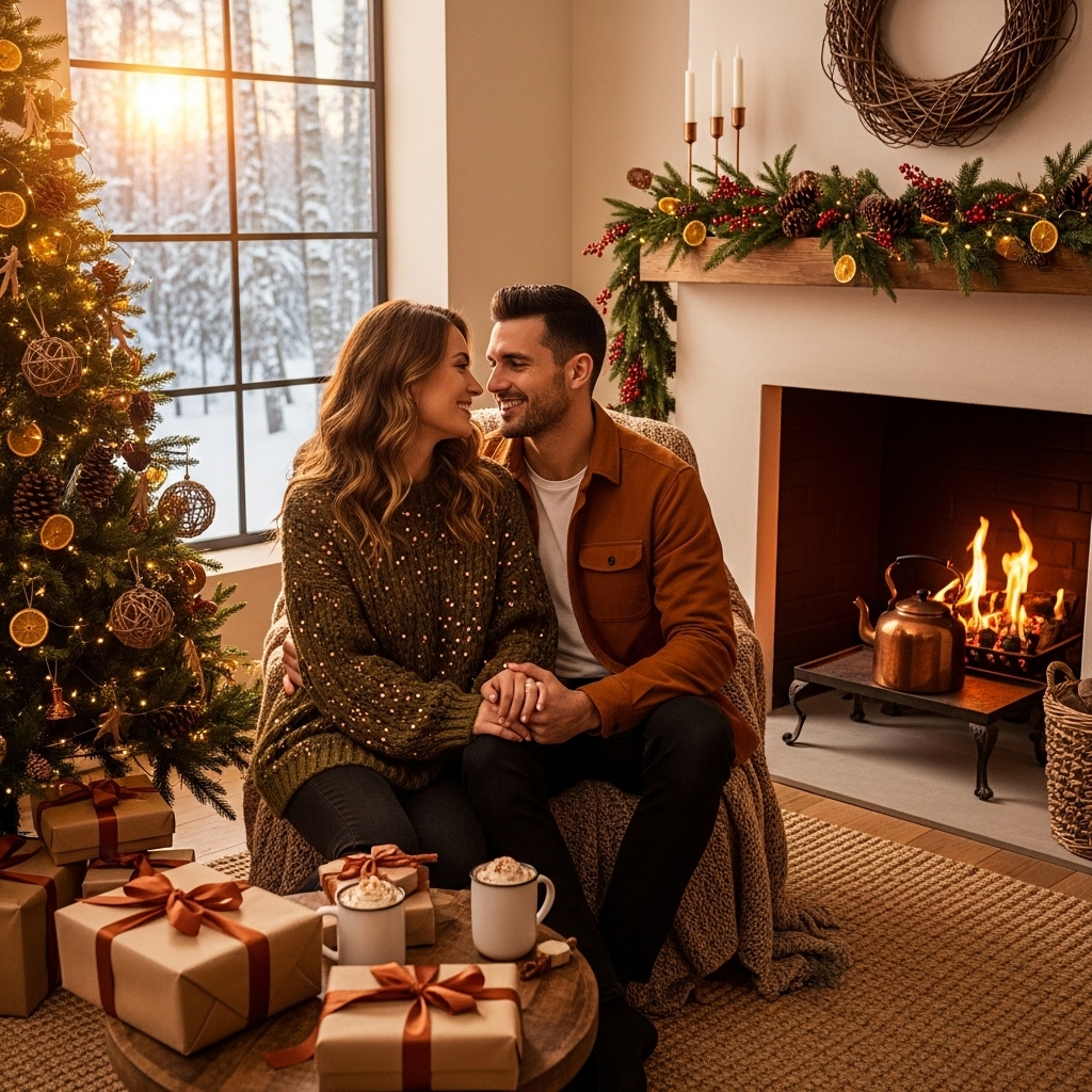 Neutrals keep you cozy; pops add holiday zing. Ideal for low-key gatherings where you still want to shine.