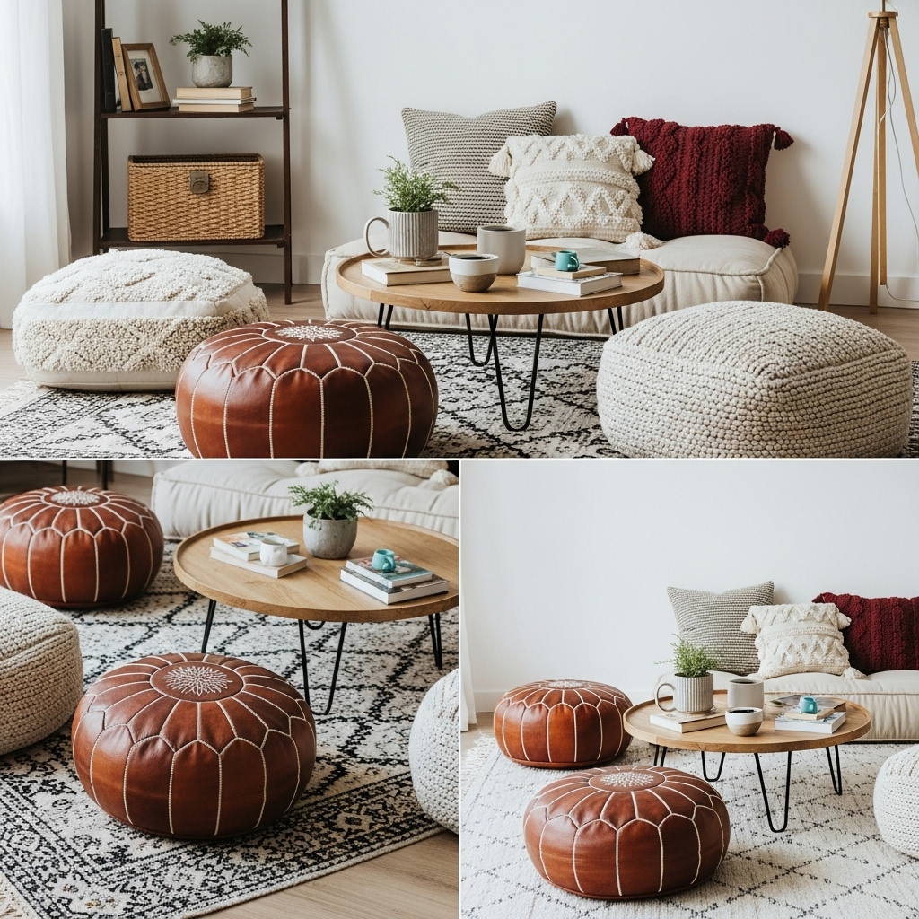 Using poufs or cushions for floor seating can transform your space into a cozy and laid-back area. It’s a great way to add extra seating without taking up much space.