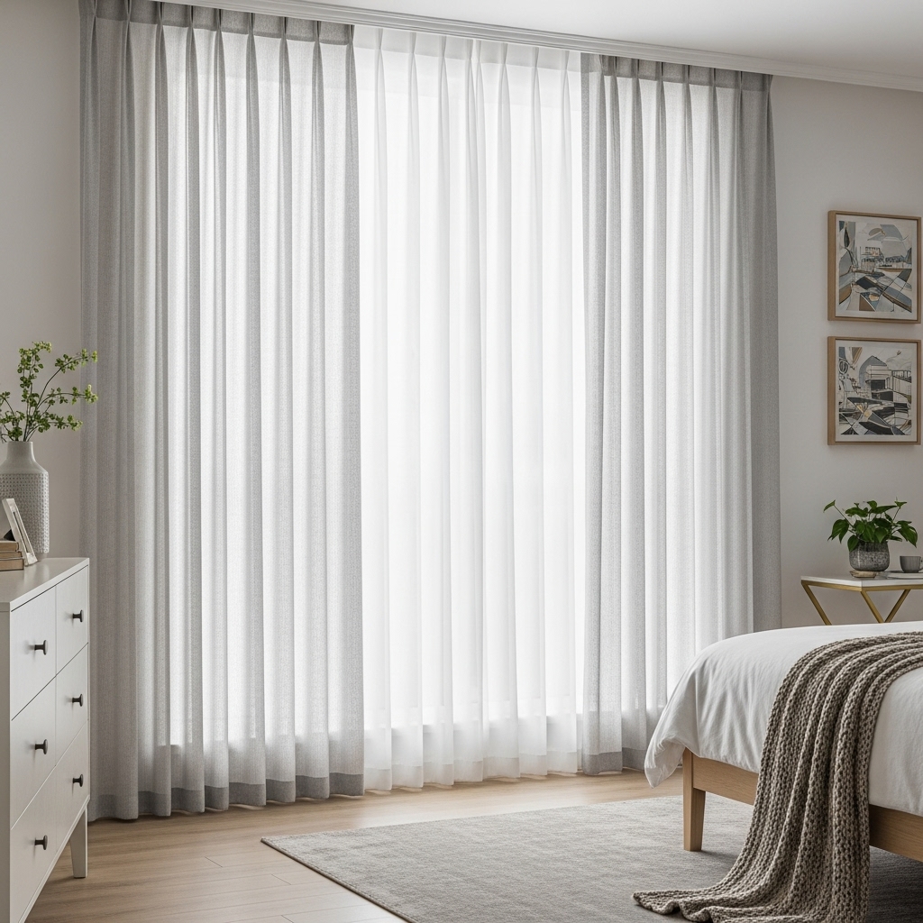 Sheer curtains offer a gentle way to let sunlight into your room while still giving you a bit of privacy. They are perfect for making a space feel open and fresh, especially in bedrooms with large windows.