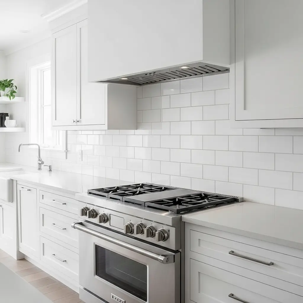 - Matching Grout: White grout with white tile creates a clean, seamless look. It makes the wall look like one solid texture. Just know that white grout near a stovetop attracts grease like a magnet.
