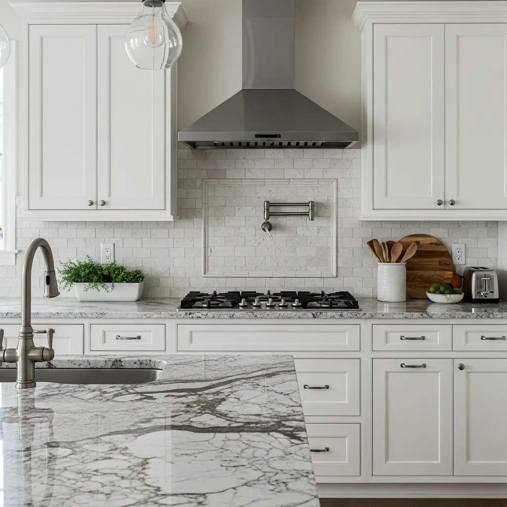 They dictate the rules. If you bought dramatic, heavily veined granite countertops, you need a quiet, simple backsplash.