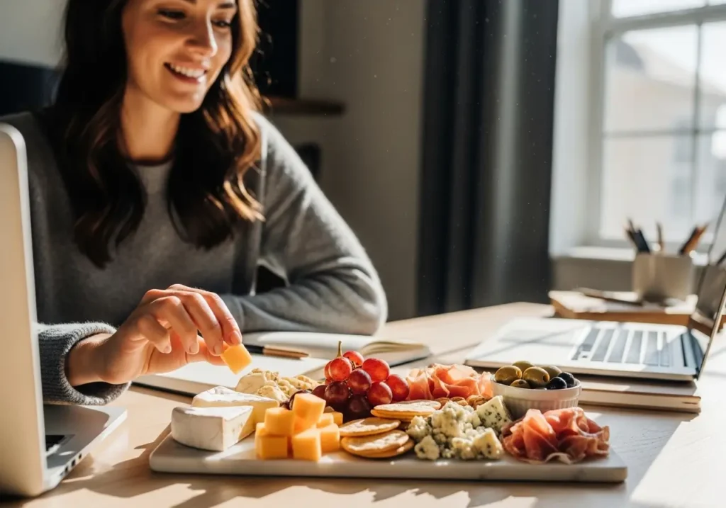 Bring her a surprise afternoon snack. Think charcuterie board, not potato chips. A small wooden board with some good cheeses, crackers, and grapes feels incredibly indulgent.