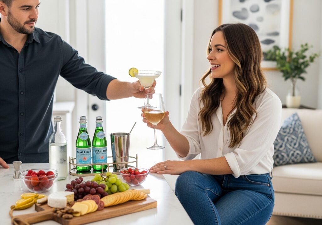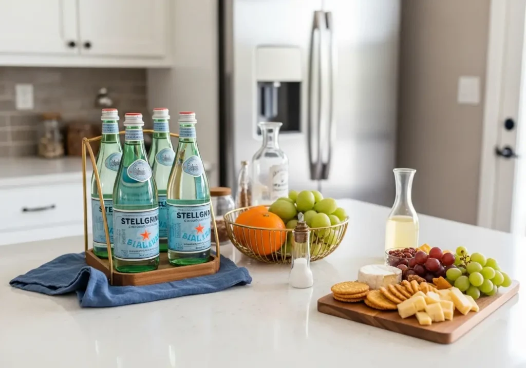 Set up a small drink station on the kitchen island or a side table. Include sparkling water, fresh fruit slices, and perhaps the ingredients for her favorite cocktail or mocktail.