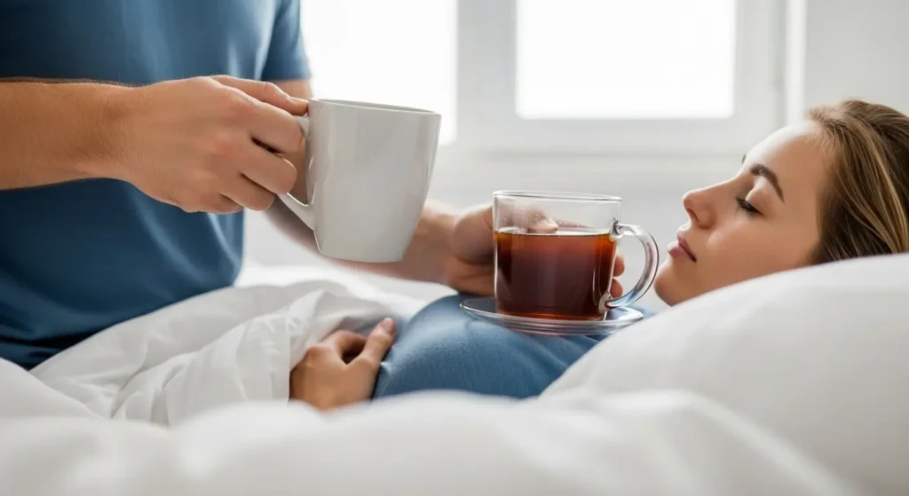 If she prefers tea, steep it for the correct amount of time before bringing it upstairs. Nobody likes a bitter, over-steeped cup of Earl Grey. Bring her a fresh cup the moment she opens her eyes.