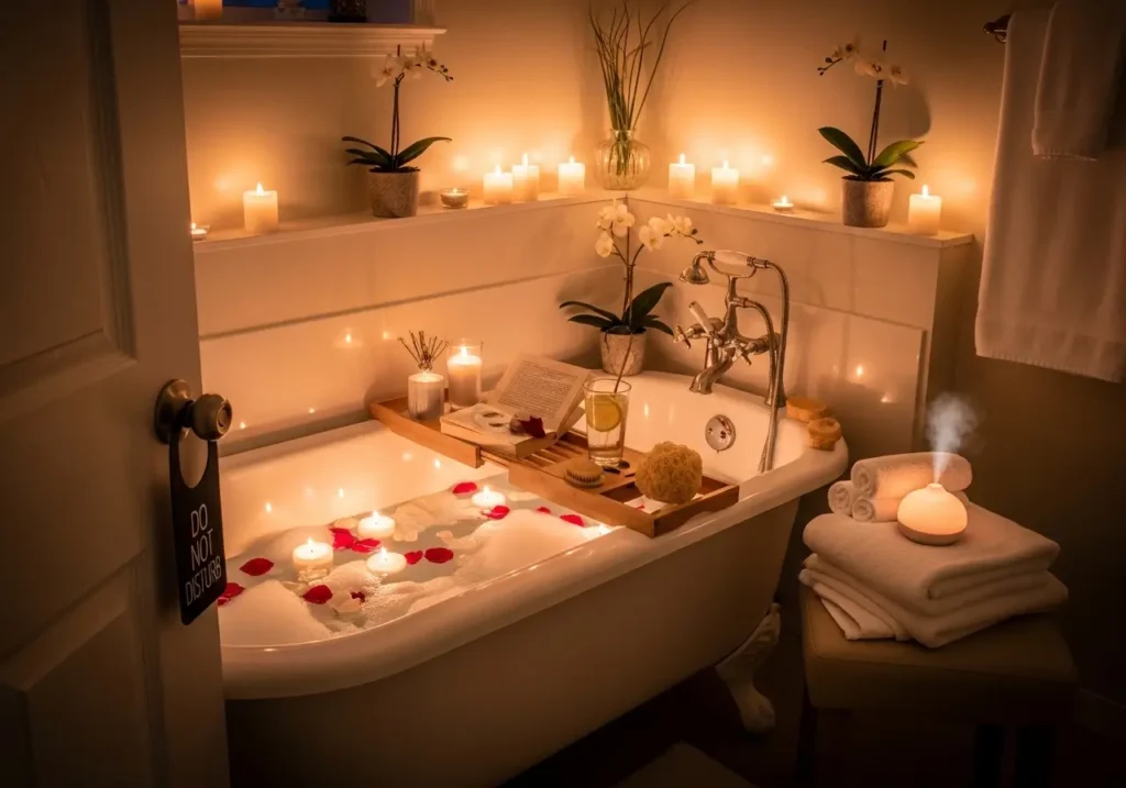 If she stays home, transform your standard bathroom into a private sanctuary. You don’t need a professional masseuse to make her feel pampered. You just need a few key supplies, hot water, and a locked door.