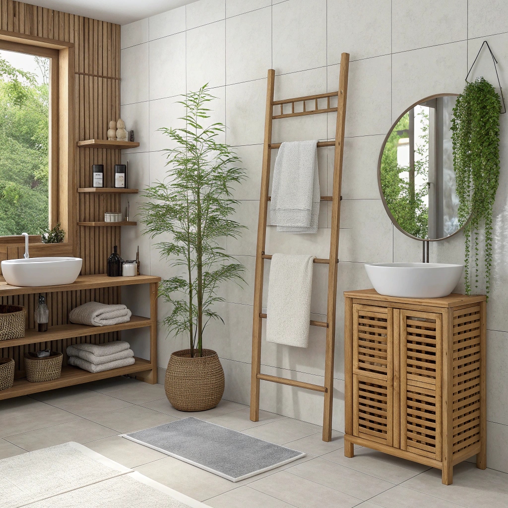 Adding bamboo accents, like towel racks or shelves, can bring a natural touch to your bathroom. Bamboo is not only durable but also adds a unique look, making your space feel more connected to nature.
