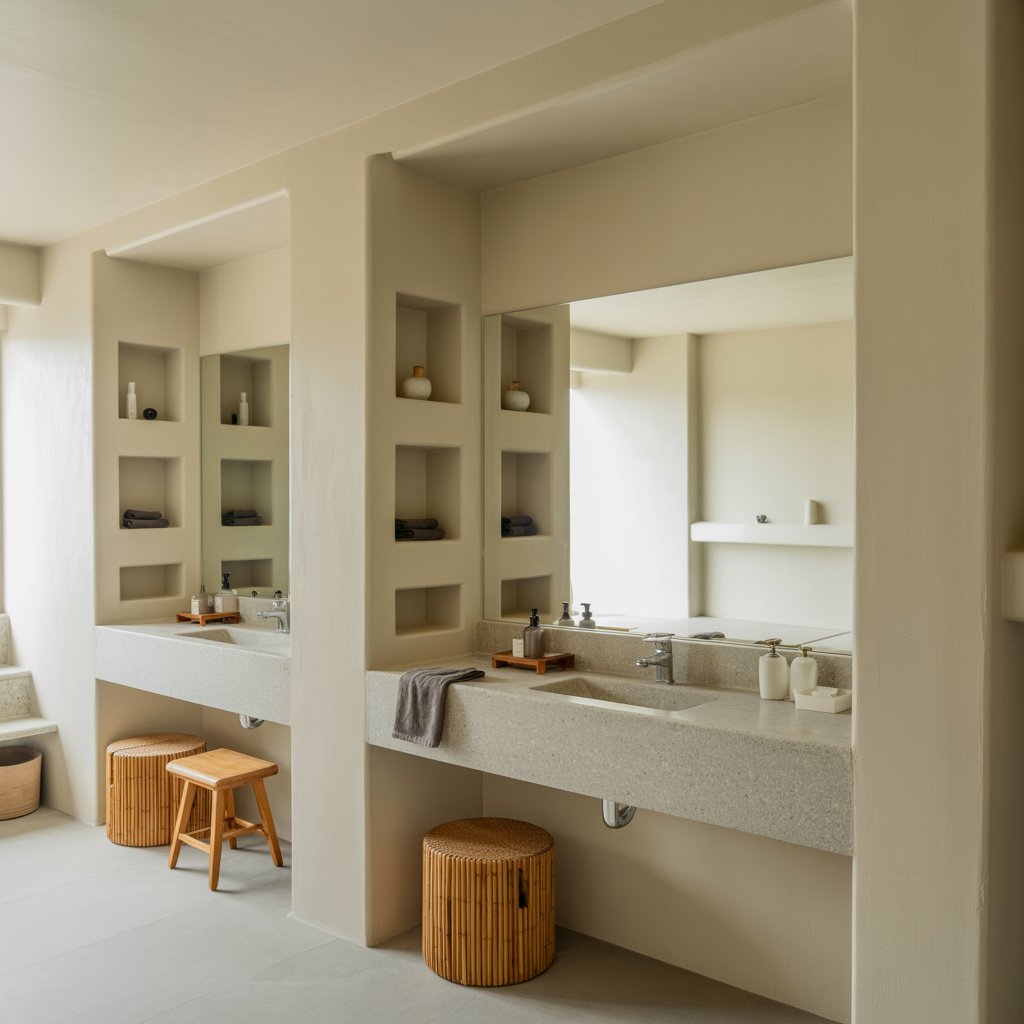 Keep your bathroom clutter-free by using built-in storage solutions. This helps maintain a clean look while keeping essentials easily accessible. Japanese-style bathroom ideas often emphasize simplicity and functionality, blending effortlessly with minimalist design principles.