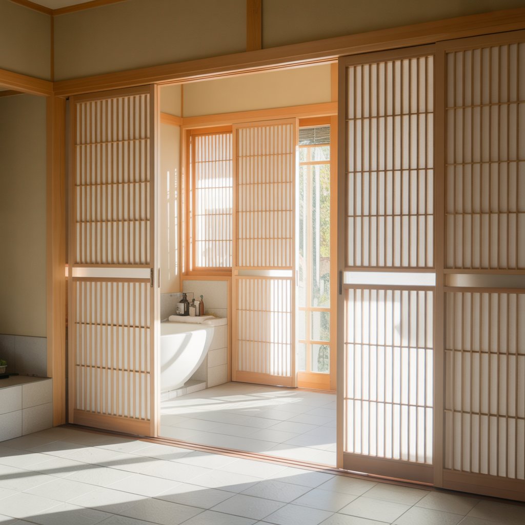 Using shoji doors in your bathroom not only adds a cultural element but also maximizes space. These doors are functional and can create a serene, light-filled environment, perfect for relaxation.