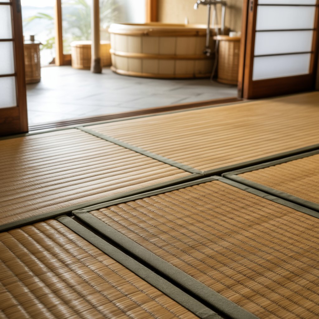 Answer: Tatami mats are soft, natural flooring choices that add a traditional feel. They help regulate humidity by absorbing and releasing moisture, making them practical and comfortable for bathrooms.