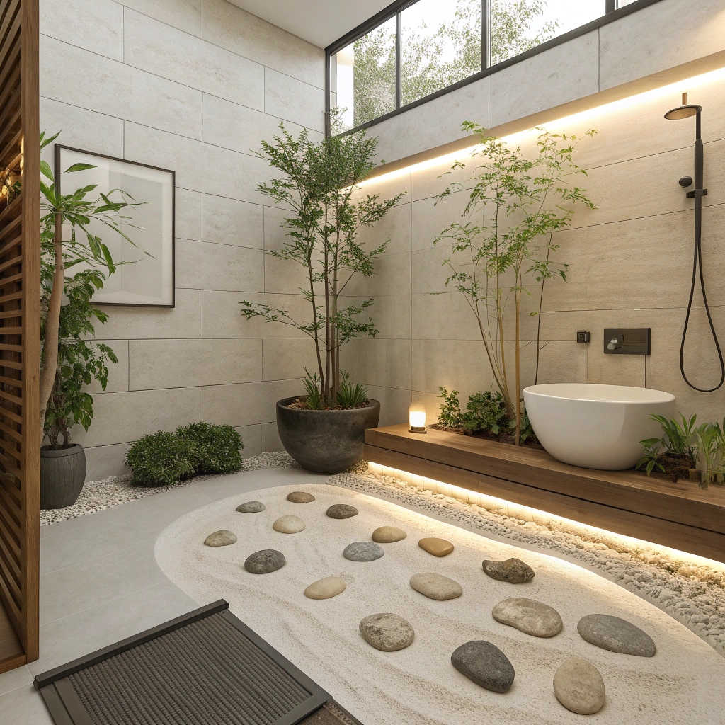 Adding a small Zen garden to your bathroom can bring a sense of calm and peace. Use sand, stones, and small plants to create a soothing corner. This simple setup can transform your space into a Japanese-style bathroom, perfect for relaxation.