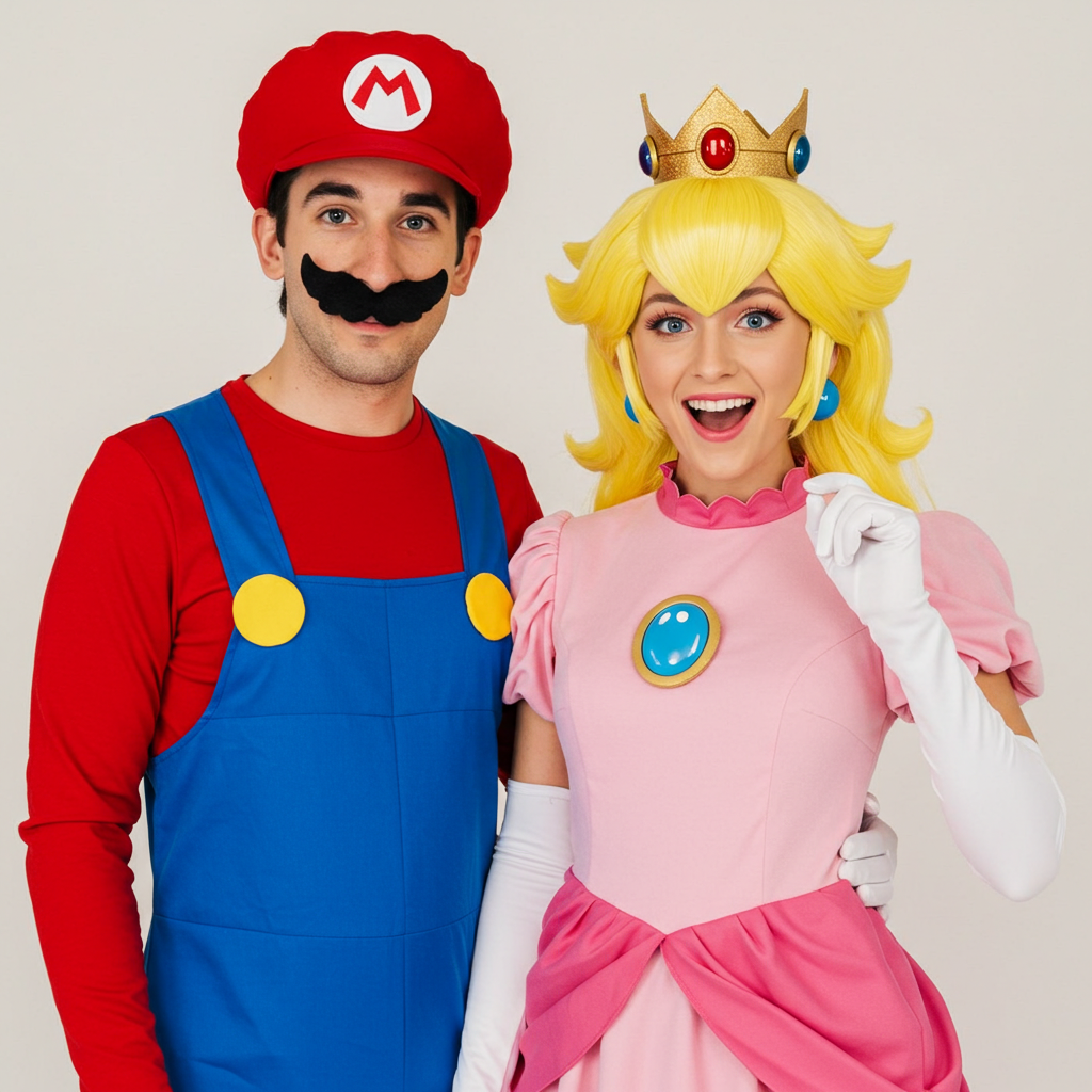 This timeless video game couple is a crowd favorite. Think bright red for Mario with his iconic cap and mustache, paired with Princess Peach’s soft pink dress and crown. It’s fun, instantly recognizable, and comfortable for partying or trick-or-treating. Adding playful props like power-up mushrooms can up the charm and photo appeal.