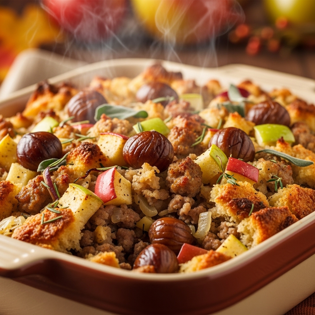 Combine the sweetness of apple with savory sausage and the texture of chestnuts for a festive stuffing.