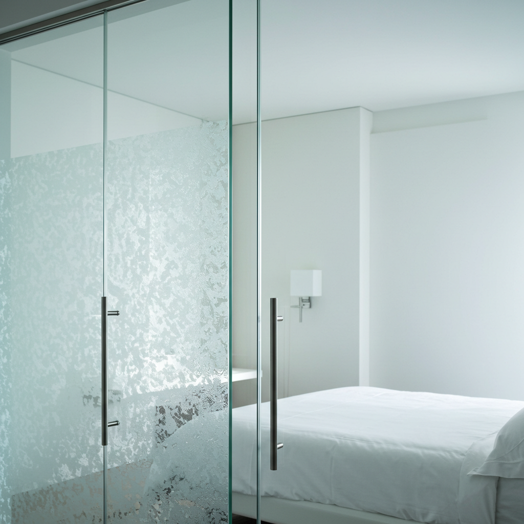 Question: Why are frosted glass doors a good choice for modern bedrooms?